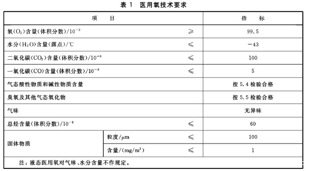 GB8982-2009《医用及航空呼吸用氧》,《中国药典》2020年版二部国家药典委员会修改公布了“关于氧国家药品标准草案"其中对医用氧的纯度及氧中痕量一氧化碳、二氧化碳、水分的含量及其检测方法都做了具体规定。