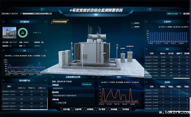 所有监测数据通过 4G/5G无线网络或光纤传输至DCS,在操作界面生成“变压器健康画像”,动态展示油色谱趋势曲线、局放地图、温度热力图等。