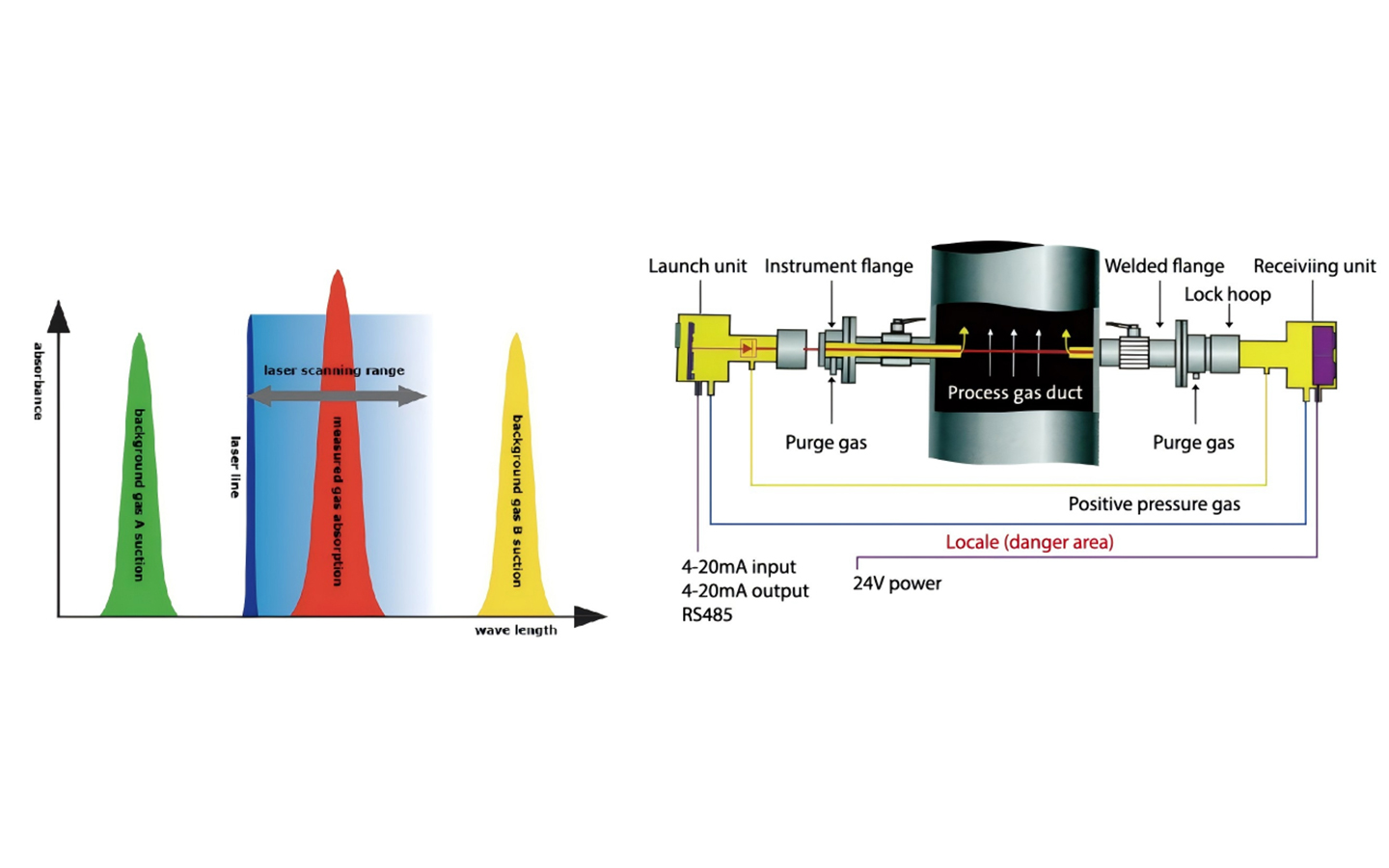 激光直接穿过被测环境(烟道、管道等),过程中目标气体分子会选择性吸收部分激光能量。