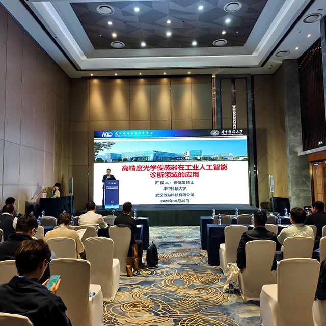 专题分享环节, 总经理张俊龙博士发表了《高精度光学传感器在工业人工智能诊断领域的应用》的专题演讲。从宏观行业视角出发,深入剖析光学传感技术的最新发展趋势与广阔市场前景。